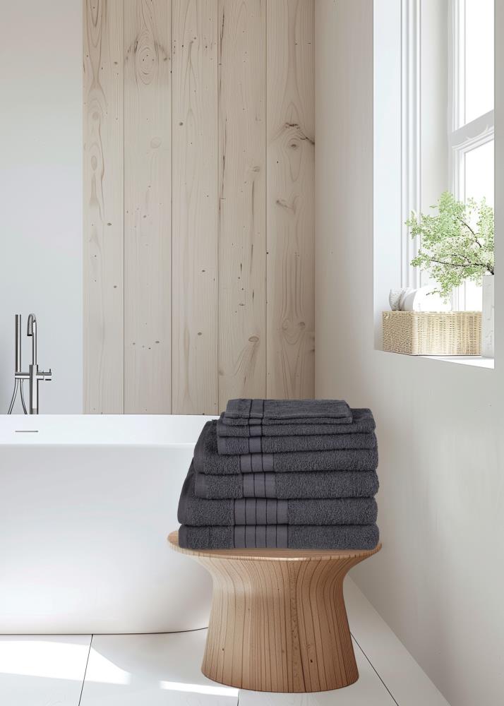 Handdoekenset van Good Morning. Deze luxe effen handdoeken zijn antraciet van kleur. De handdoeken zijn met luxe geweven band en brengen een rustige, stijlvolle sfeer in elke badkamer. Een perfecte finishing touch!