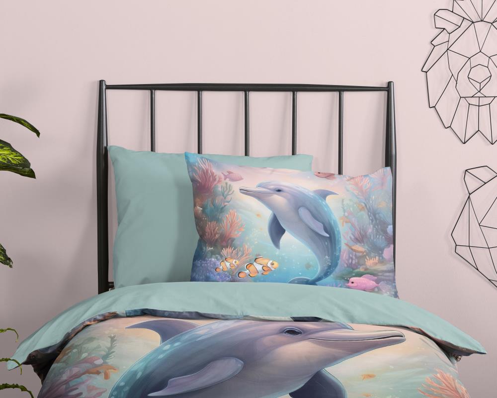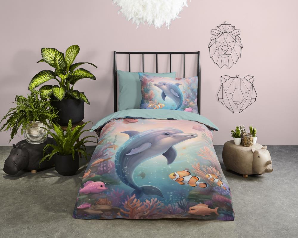 Kinderdekbedovertrek Baya van Good Morning in de kleur multi, met een print van dolfijn en vissen. Het dekbedovertrek is gemaakt van 100% katoen. Deze kwaliteit is ademend, vochtabsorberend en voelt zacht en soepel aan. Dit leuke kinderdekbedovertrek is een leuke toevoeging aan iedere kinderkamer. Het kinderdekbedovertrek is geschikt voor ieder jaargetijde. Het katoenen 100% katoen is heerlijk koel in de zomer en geeft warmte in de winter.