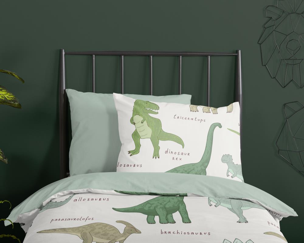 Kinderdekbedovertrek Beata van Good Morning in de kleur groen, met een print van Dino's. Het dekbedovertrek is gemaakt van 100% katoen. Deze kwaliteit is ademend, vochtabsorberend en voelt zacht en soepel aan. Dit leuke kinderdekbedovertrek is een leuke toevoeging aan iedere kinderkamer. Het kinderdekbedovertrek is geschikt voor ieder jaargetijde. Het katoenen 100% katoen is heerlijk koel in de zomer en geeft warmte in de winter.