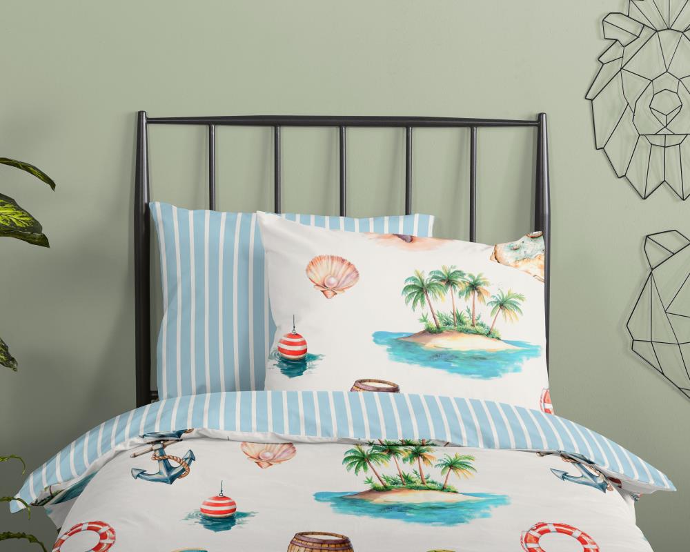 Kinderdekbedovertrek Capi van Good Morning in de kleur blauw, met een print van maratiem / zeedieren. Het dekbedovertrek is gemaakt van 100% katoen. Deze kwaliteit is ademend, vochtabsorberend en voelt zacht en soepel aan. Dit leuke kinderdekbedovertrek is een leuke toevoeging aan iedere kinderkamer. Het kinderdekbedovertrek is geschikt voor ieder jaargetijde. Het katoenen 100% katoen is heerlijk koel in de zomer en geeft warmte in de winter.