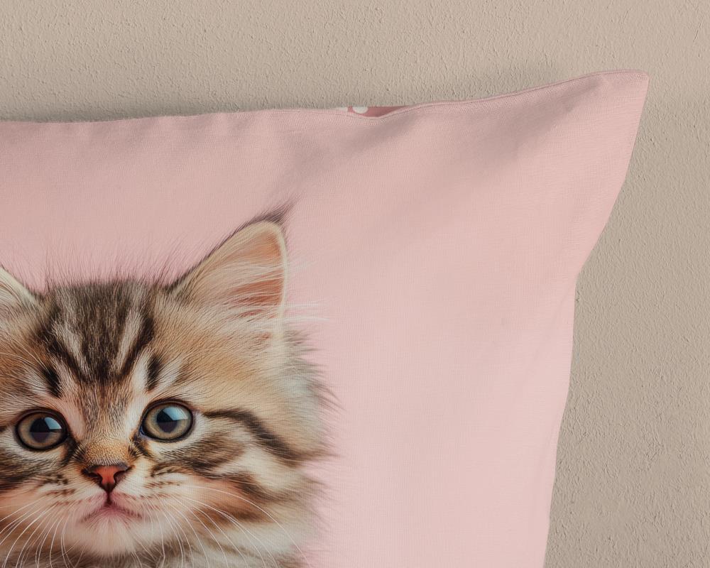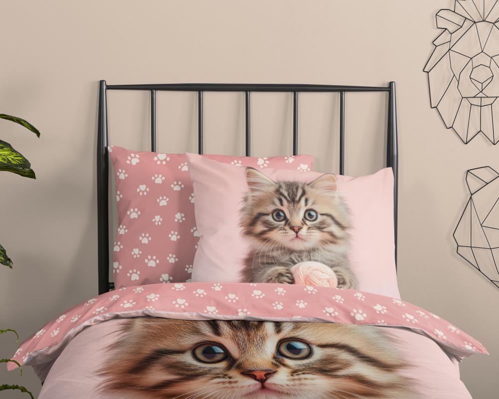Kinderdekbedovertrek Chat van Good Morning in de kleur roze, met een print van Kitten met bolletje wol. Het dekbedovertrek is gemaakt van 100% katoen. Deze kwaliteit is ademend, vochtabsorberend en voelt zacht en soepel aan. Dit leuke kinderdekbedovertrek is een leuke toevoeging aan iedere kinderkamer. Het kinderdekbedovertrek is geschikt voor ieder jaargetijde. Het katoenen 100% katoen is heerlijk koel in de zomer en geeft warmte in de winter.