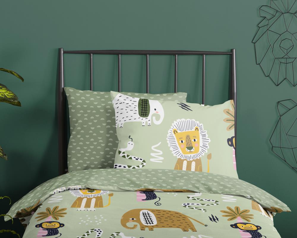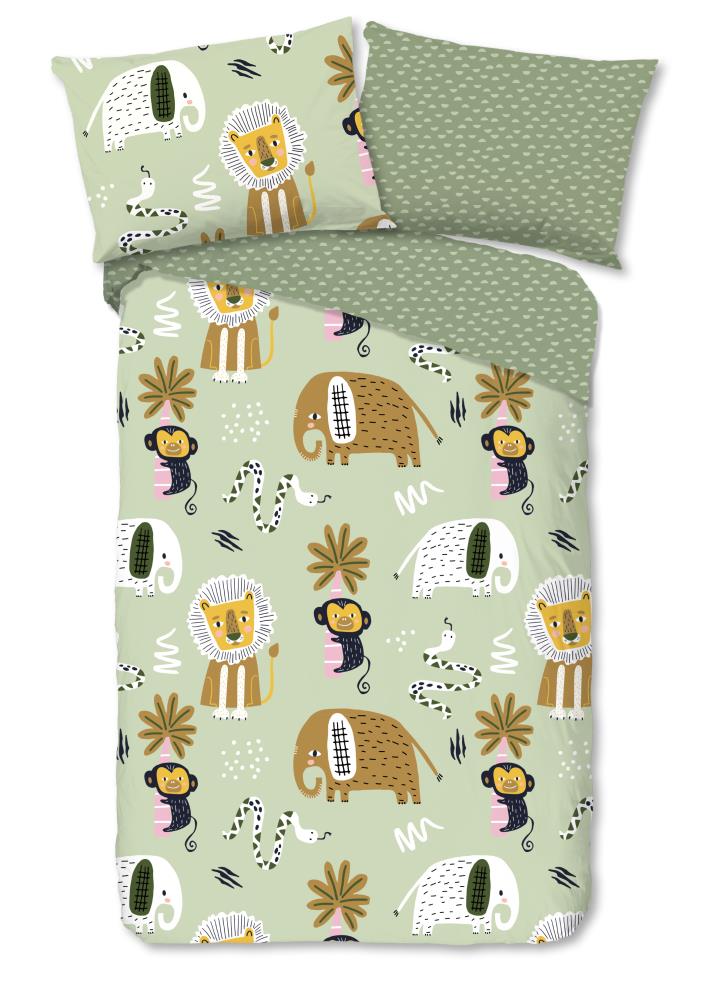 Kinderdekbedovertrek Chuck van Good Morning in de kleur groen, met een print van dieren. Het dekbedovertrek is gemaakt van 100% katoen. Deze kwaliteit is ademend, vochtabsorberend en voelt zacht en soepel aan. Dit leuke kinderdekbedovertrek is een leuke toevoeging aan iedere kinderkamer. Het kinderdekbedovertrek is geschikt voor ieder jaargetijde. Het katoenen 100% katoen is heerlijk koel in de zomer en geeft warmte in de winter.