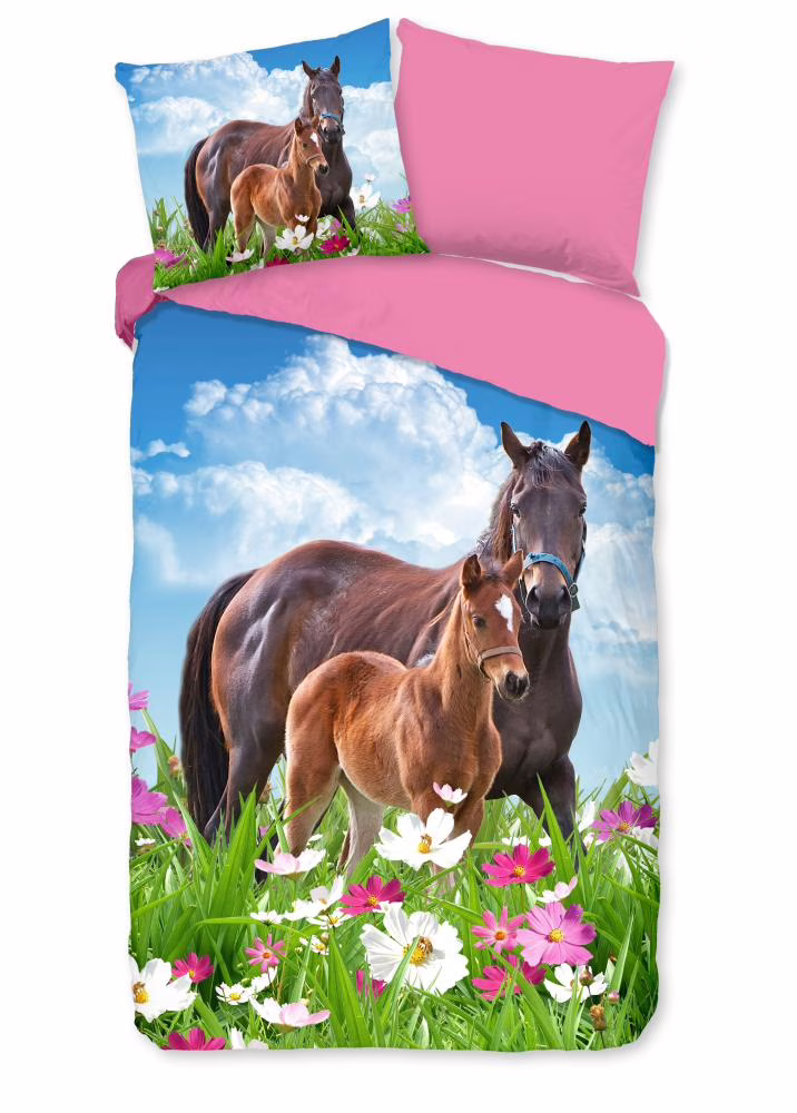 Kinderdekbedovertrek Dora van Good Morning in de kleur multi, met een print van paarden. Het dekbedovertrek is gemaakt van 100% katoen. Deze kwaliteit is ademend, vochtabsorberend en voelt zacht en soepel aan. Dit leuke kinderdekbedovertrek is een leuke toevoeging aan iedere kinderkamer. Het kinderdekbedovertrek is geschikt voor ieder jaargetijde. Het katoenen 100% katoen is heerlijk koel in de zomer en geeft warmte in de winter.