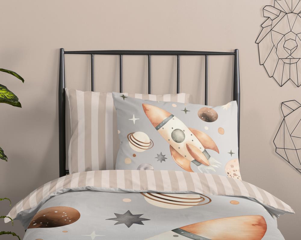 Kinderdekbedovertrek Explore van Good Morning in de kleur grijs, met een print van Raket in ruimte. Het dekbedovertrek is gemaakt van 100% katoen. Deze kwaliteit is ademend, vochtabsorberend en voelt zacht en soepel aan. Dit leuke kinderdekbedovertrek is een leuke toevoeging aan iedere kinderkamer. Het kinderdekbedovertrek is geschikt voor ieder jaargetijde. Het katoenen 100% katoen is heerlijk koel in de zomer en geeft warmte in de winter.