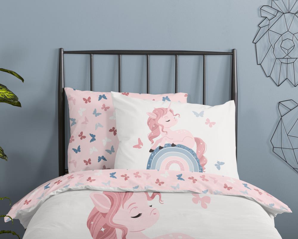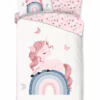 Kinderdekbedovertrek Fiby van Good Morning in de kleur wit, met een print van Eenhoorn op regenboog. Het dekbedovertrek is gemaakt van 100% katoen. Deze kwaliteit is ademend, vochtabsorberend en voelt zacht en soepel aan. Dit leuke kinderdekbedovertrek is een leuke toevoeging aan iedere kinderkamer. Het kinderdekbedovertrek is geschikt voor ieder jaargetijde. Het katoenen 100% katoen is heerlijk koel in de zomer en geeft warmte in de winter.