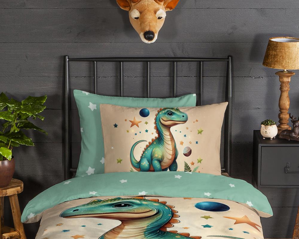 Flanellen kinderdekbedovertrek Milo van Good Morning, in de kleur groen, met een print van een Dino. Het dekbedovertrek is gemaakt van 100% katoen/flanel dat licht is geruwd, waardoor een fluweeelzacht laagje ontstaat dat heerlijk warm aanvoelt -perfect voor koude nachten. Deze warme, comfortabele stof is ademend en vochtabsorberend. Dit leuke kinderdekbedovertrek is een toevoeging aan iedere kinderkamer. Flanellen kinderdekbedovertrek zijn bij uitstek geschikt voor de koude wintermaanden.