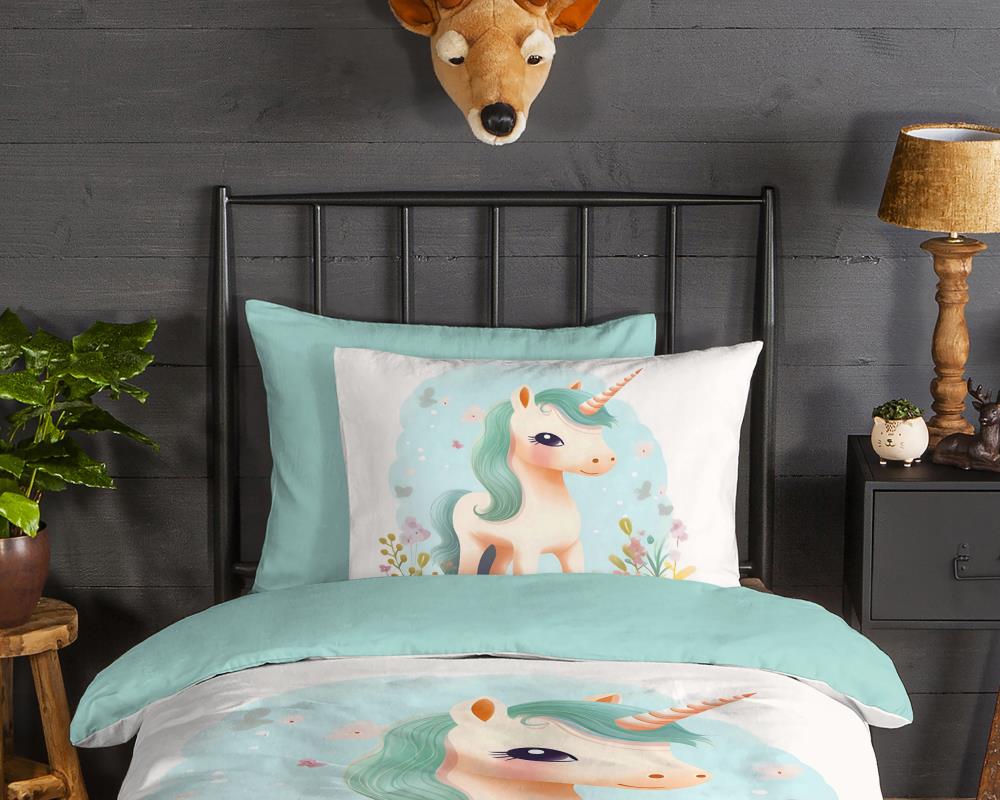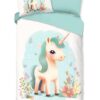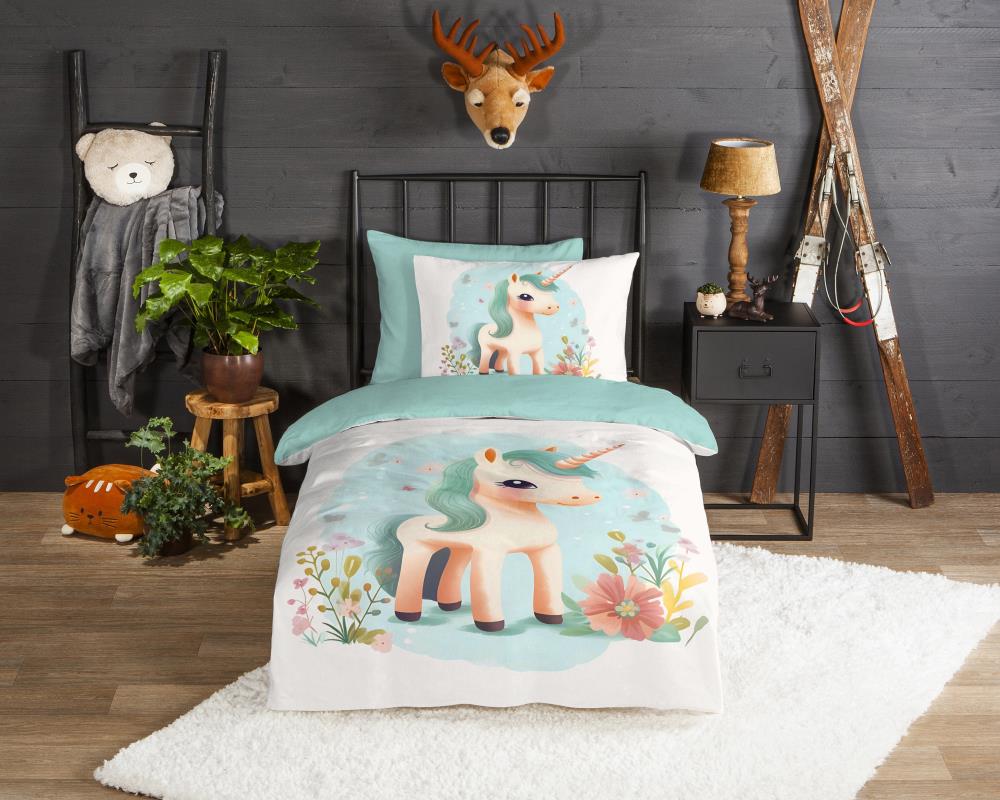 Flanellen kinderdekbedovertrek One van Good Morning, in de kleur multi, met een print van een eenhorn. Het dekbedovertrek is gemaakt van 100% katoen/flanel dat licht is geruwd, waardoor een fluweeelzacht laagje ontstaat dat heerlijk warm aanvoelt -perfect voor koude nachten. Deze warme, comfortabele stof is ademend en vochtabsorberend. Dit leuke kinderdekbedovertrek is een toevoeging aan iedere kinderkamer. Flanellen kinderdekbedovertrek zijn bij uitstek geschikt voor de koude wintermaanden.