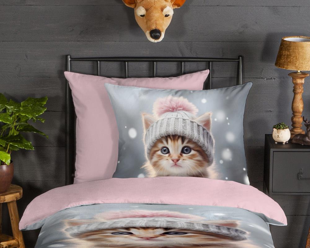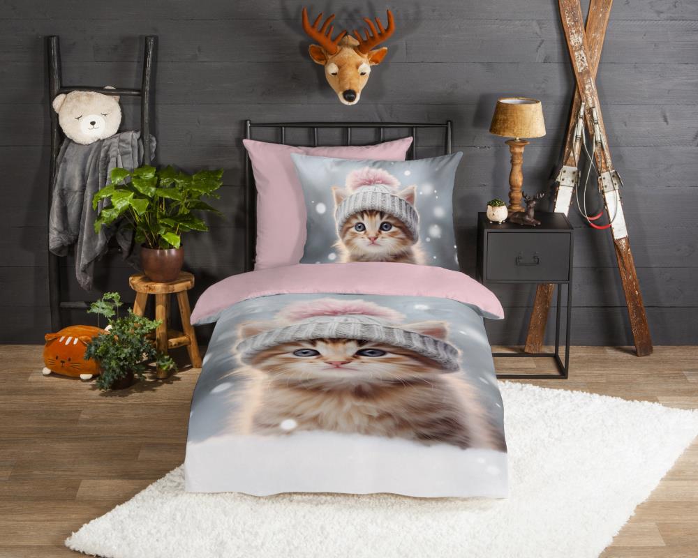 Flanellen kinderdekbedovertrek Patt van Good Morning, in de kleur multi, met een print van een kat/ poes. Het dekbedovertrek is gemaakt van 100% katoen/flanel dat licht is geruwd, waardoor een fluweeelzacht laagje ontstaat dat heerlijk warm aanvoelt -perfect voor koude nachten. Deze warme, comfortabele stof is ademend en vochtabsorberend. Dit leuke kinderdekbedovertrek is een toevoeging aan iedere kinderkamer. Flanellen kinderdekbedovertrek zijn bij uitstek geschikt voor de koude wintermaanden.