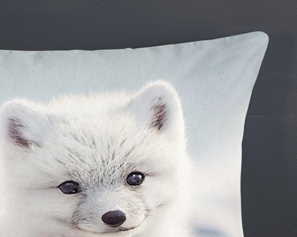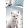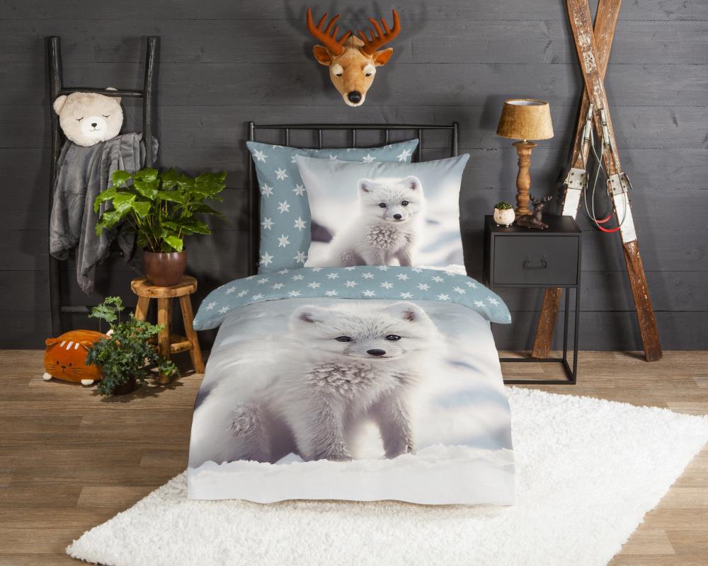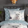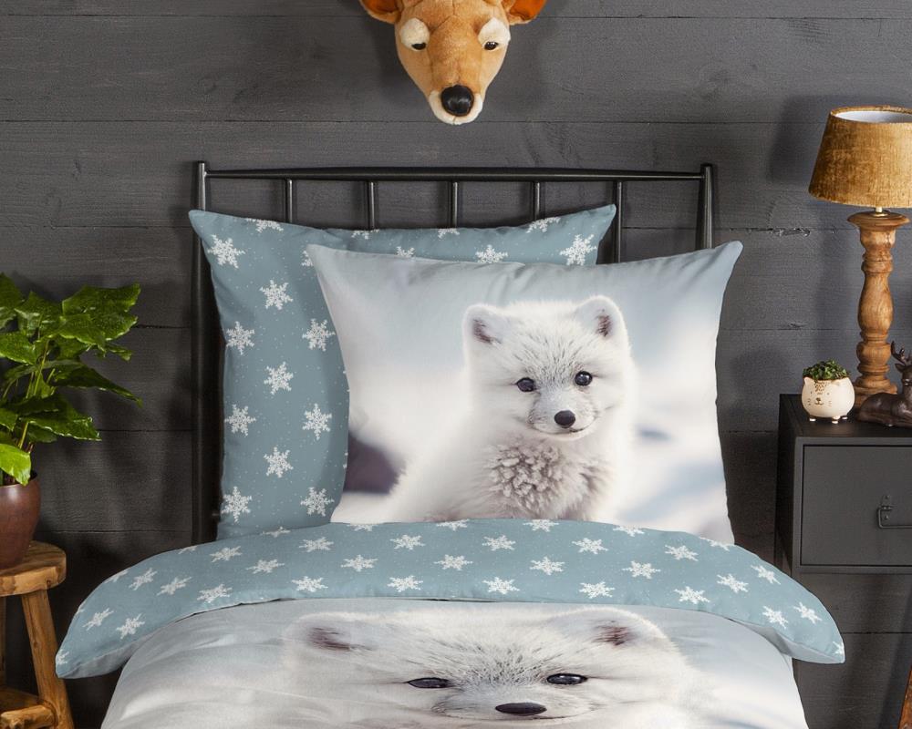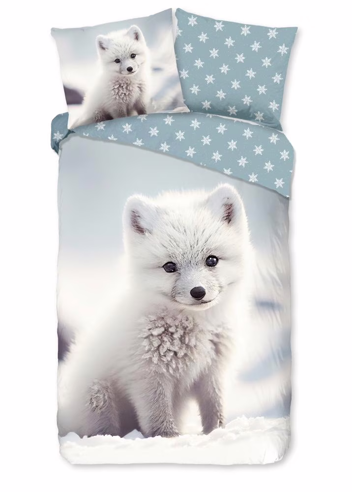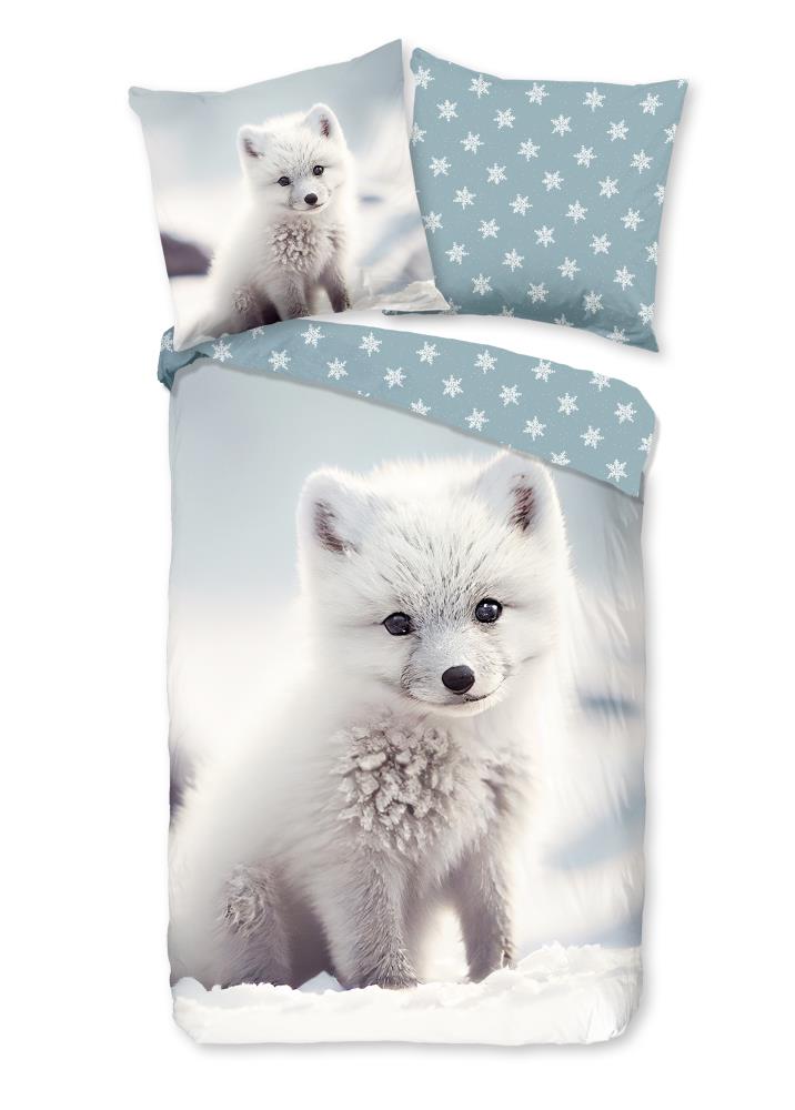Flanellen kinderdekbedovertrek Toss van Good Morning, in de kleur wit, met een print van een baby poolvos. Het dekbedovertrek is gemaakt van 100% katoen/flanel dat licht is geruwd, waardoor een fluweeelzacht laagje ontstaat dat heerlijk warm aanvoelt -perfect voor koude nachten. Deze warme, comfortabele stof is ademend en vochtabsorberend. Dit leuke kinderdekbedovertrek is een toevoeging aan iedere kinderkamer. Flanellen kinderdekbedovertrek zijn bij uitstek geschikt voor de koude wintermaanden.