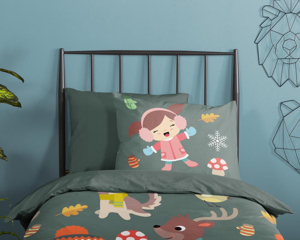 Kinderdekbedovertrek Fun van Good Morning in de kleur groen, met een print van winter thema. Het dekbedovertrek is gemaakt van 100% katoen. Deze kwaliteit is ademend, vochtabsorberend en voelt zacht en soepel aan. Dit leuke kinderdekbedovertrek is een leuke toevoeging aan iedere kinderkamer. Het kinderdekbedovertrek is geschikt voor ieder jaargetijde. Het katoenen 100% katoen is heerlijk koel in de zomer en geeft warmte in de winter.