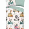 De set bestaat uit 1 kinderdekbedovertrek in de maat 135x200 cm inclusief één kussensloop van 80x80 cm met ritssluiting.
