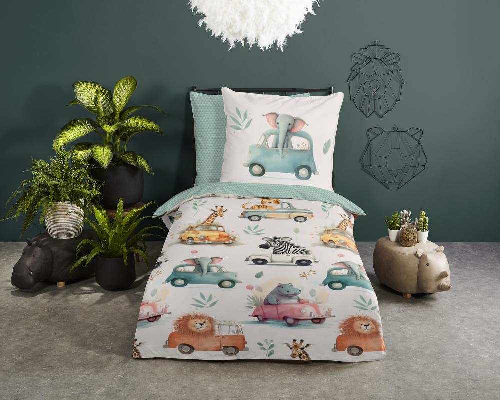 Kinderdekbedovertrek Gogo van Good Morning in de kleur multi, met een print van dieren in auto's. Het dekbedovertrek is gemaakt van 100% katoen. Deze kwaliteit is ademend, vochtabsorberend en voelt zacht en soepel aan. Dit leuke kinderdekbedovertrek is een leuke toevoeging aan iedere kinderkamer. Het kinderdekbedovertrek is geschikt voor ieder jaargetijde. Het katoenen 100% katoen is heerlijk koel in de zomer en geeft warmte in de winter.