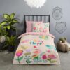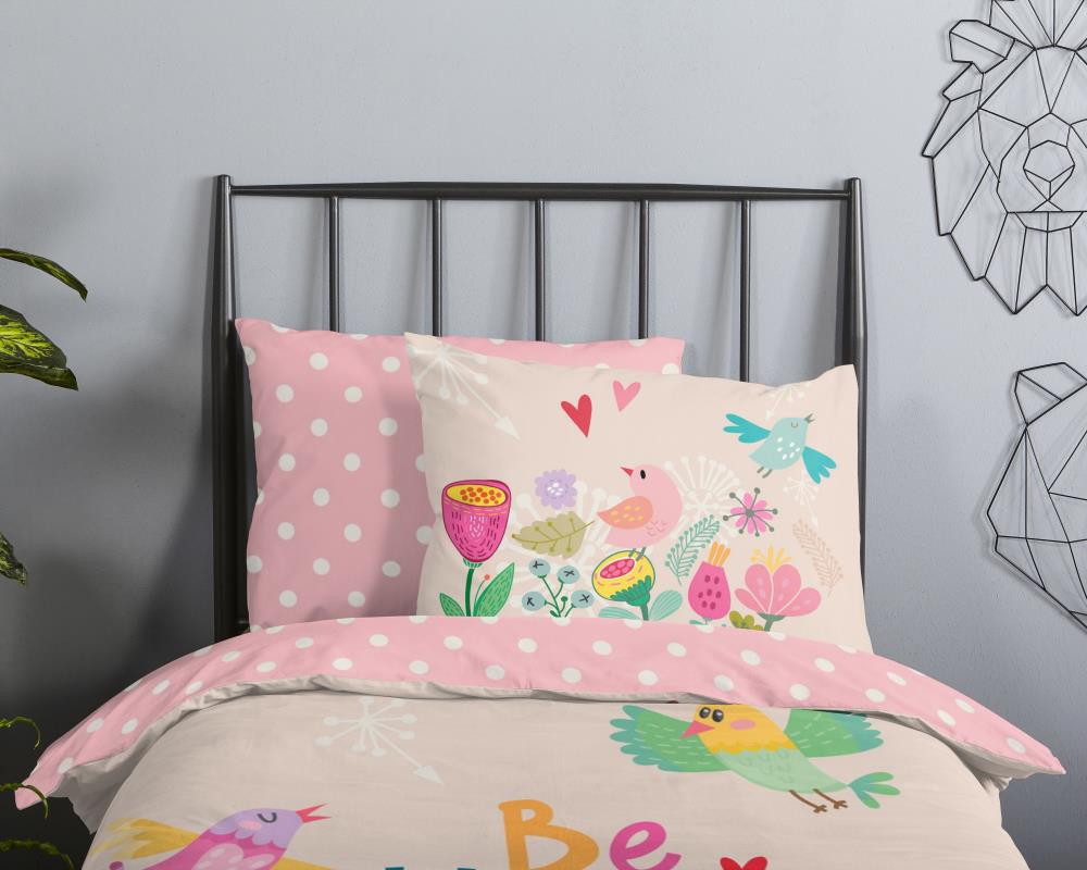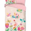 Kinderdekbedovertrek Happily van Good Morning in de kleur roze, met een print van bloemen en vogels. Het dekbedovertrek is gemaakt van 100% katoen. Deze kwaliteit is ademend, vochtabsorberend en voelt zacht en soepel aan. Dit leuke kinderdekbedovertrek is een leuke toevoeging aan iedere kinderkamer. Het kinderdekbedovertrek is geschikt voor ieder jaargetijde. Het katoenen 100% katoen is heerlijk koel in de zomer en geeft warmte in de winter.