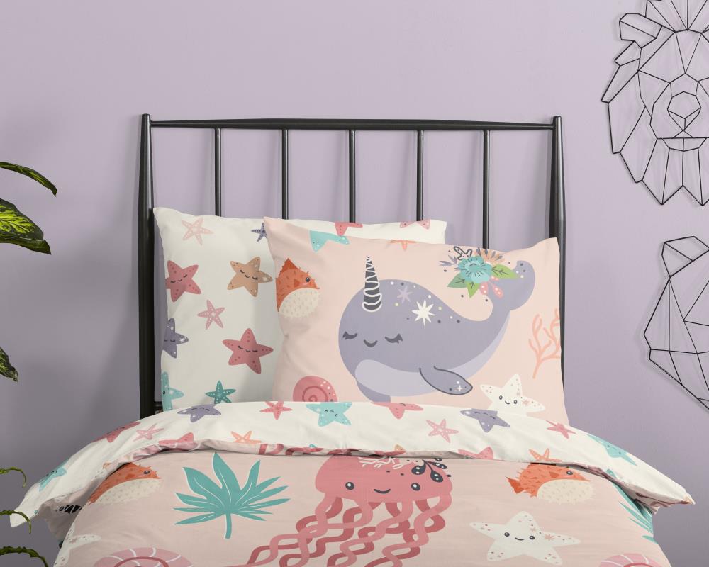 Kinderdekbedovertrek Loua van Good Morning in de kleur roze, met een print van zeepaard, narwal en andere zeedieren. Het dekbedovertrek is gemaakt van 100% katoen. Deze kwaliteit is ademend, vochtabsorberend en voelt zacht en soepel aan. Dit leuke kinderdekbedovertrek is een leuke toevoeging aan iedere kinderkamer. Het kinderdekbedovertrek is geschikt voor ieder jaargetijde. Het katoenen 100% katoen is heerlijk koel in de zomer en geeft warmte in de winter.