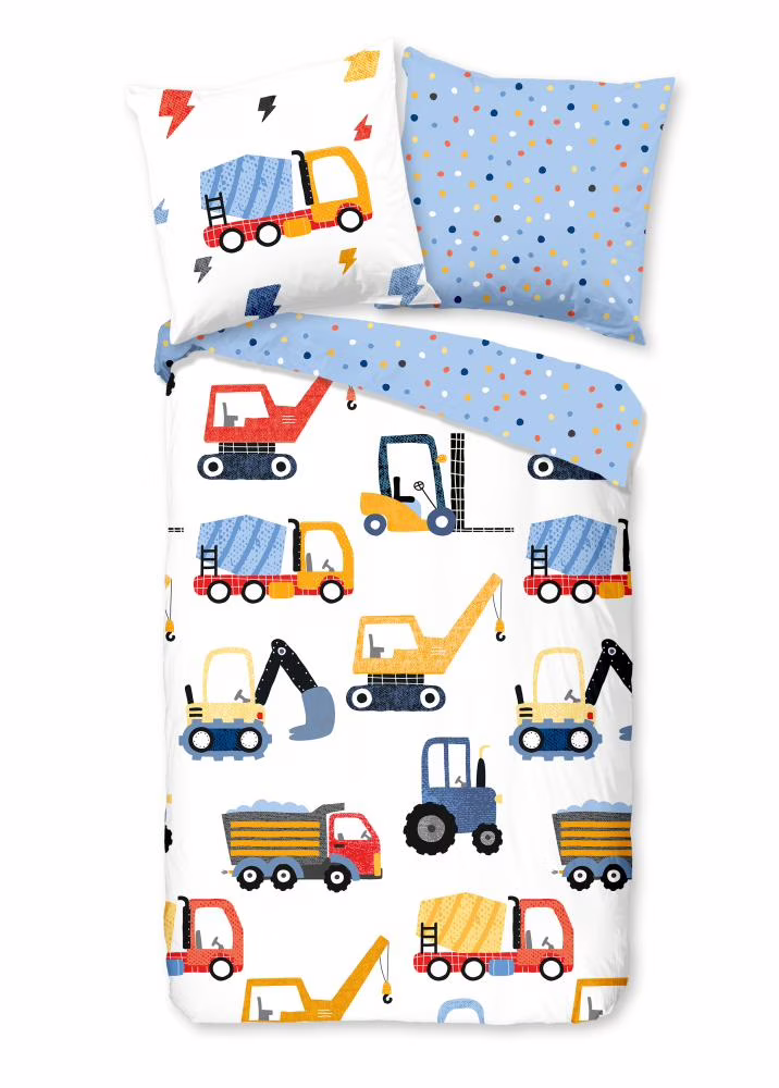 Kinderdekbedovertrek Machines van Good Morning in de kleur multi, met een print van voertuigen. Het dekbedovertrek is gemaakt van 100% katoen. Deze kwaliteit is ademend, vochtabsorberend en voelt zacht en soepel aan. Dit leuke kinderdekbedovertrek is een leuke toevoeging aan iedere kinderkamer. Het kinderdekbedovertrek is geschikt voor ieder jaargetijde. Het katoenen 100% katoen is heerlijk koel in de zomer en geeft warmte in de winter.