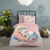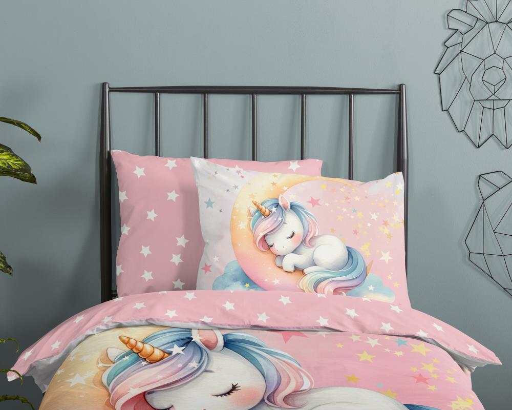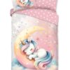 Kinderdekbedovertrek Molly van Good Morning in de kleur roze, met een print van Eenhoorn slapend op maan. Het dekbedovertrek is gemaakt van 100% katoen. Deze kwaliteit is ademend, vochtabsorberend en voelt zacht en soepel aan. Dit leuke kinderdekbedovertrek is een leuke toevoeging aan iedere kinderkamer. Het kinderdekbedovertrek is geschikt voor ieder jaargetijde. Het katoenen 100% katoen is heerlijk koel in de zomer en geeft warmte in de winter.