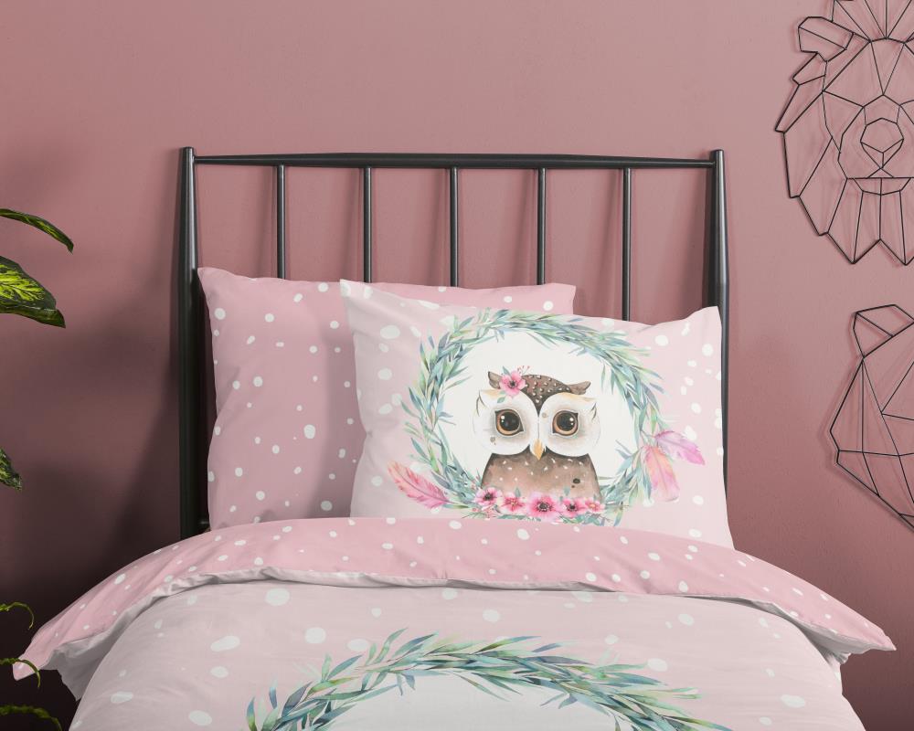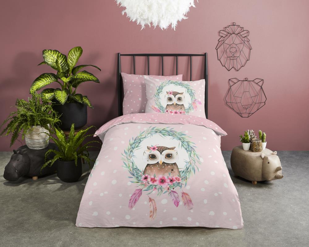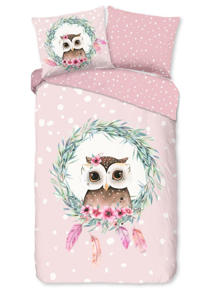 Kinderdekbedovertrek Owli van Good Morning in de kleur roze, met een print van uil en veren. Het dekbedovertrek is gemaakt van 100% katoen. Deze kwaliteit is ademend, vochtabsorberend en voelt zacht en soepel aan. Dit leuke kinderdekbedovertrek is een leuke toevoeging aan iedere kinderkamer. Het kinderdekbedovertrek is geschikt voor ieder jaargetijde. Het katoenen 100% katoen is heerlijk koel in de zomer en geeft warmte in de winter.