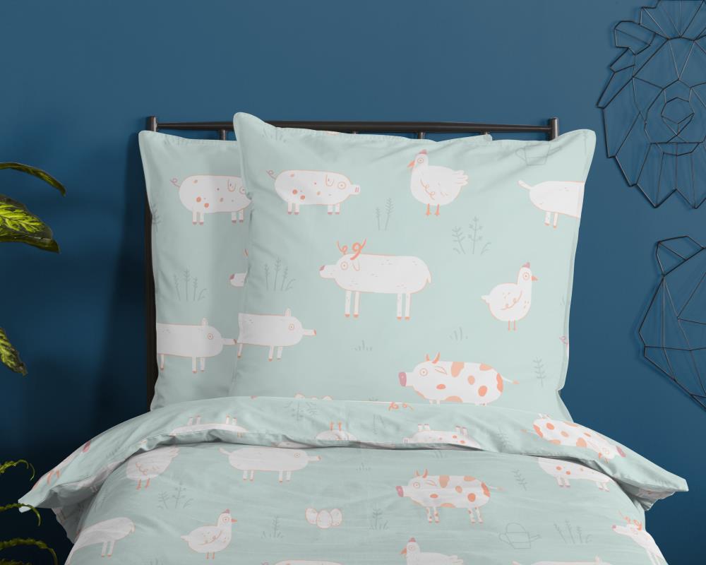 Kinderdekbedovertrek Petting Zoo van Good Morning in de kleur mint, met een print van boerderij dieren. Het dekbedovertrek is gemaakt van 100% katoen. Deze kwaliteit is ademend, vochtabsorberend en voelt zacht en soepel aan. Dit leuke kinderdekbedovertrek is een leuke toevoeging aan iedere kinderkamer. Het kinderdekbedovertrek is geschikt voor ieder jaargetijde. Het katoenen 100% katoen is heerlijk koel in de zomer en geeft warmte in de winter.