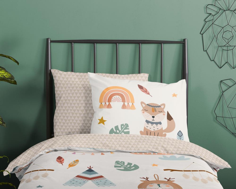Kinderdekbedovertrek Remi van Good Morning in de kleur zand, met een print van tipi-tenten / boho. Het dekbedovertrek is gemaakt van 100% katoen. Deze kwaliteit is ademend, vochtabsorberend en voelt zacht en soepel aan. Dit leuke kinderdekbedovertrek is een leuke toevoeging aan iedere kinderkamer. Het kinderdekbedovertrek is geschikt voor ieder jaargetijde. Het katoenen 100% katoen is heerlijk koel in de zomer en geeft warmte in de winter.