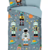 Kinderdekbedovertrek Spacemen van Good Morning in de kleur grijs, met een print van planeten / ruimte. Het dekbedovertrek is gemaakt van 100% katoen. Deze kwaliteit is ademend, vochtabsorberend en voelt zacht en soepel aan. Dit leuke kinderdekbedovertrek is een leuke toevoeging aan iedere kinderkamer. Het kinderdekbedovertrek is geschikt voor ieder jaargetijde. Het katoenen 100% katoen is heerlijk koel in de zomer en geeft warmte in de winter.