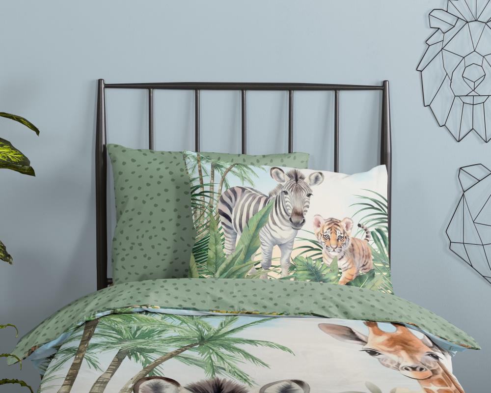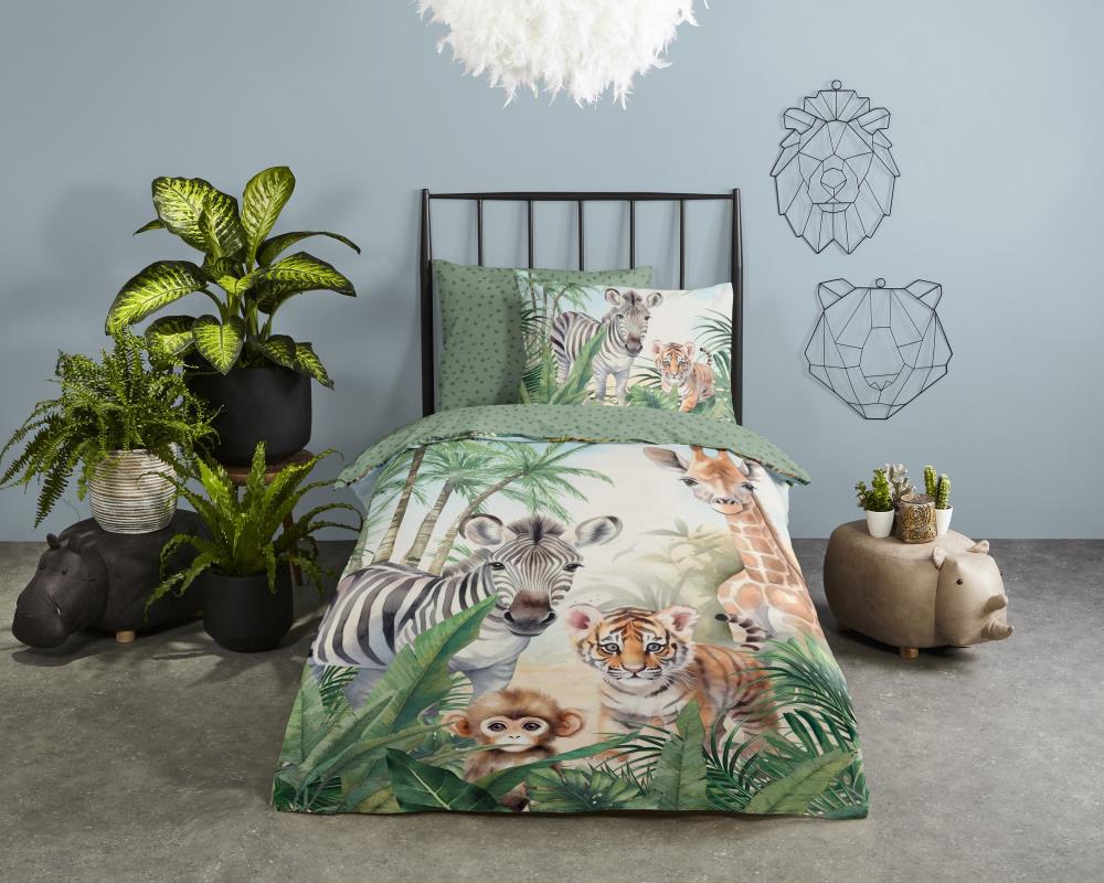 Kinderdekbedovertrek Thabo van Good Morning in de kleur multi, met een print van jungle dieren. Het dekbedovertrek is gemaakt van 100% katoen. Deze kwaliteit is ademend, vochtabsorberend en voelt zacht en soepel aan. Dit leuke kinderdekbedovertrek is een leuke toevoeging aan iedere kinderkamer. Het kinderdekbedovertrek is geschikt voor ieder jaargetijde. Het katoenen 100% katoen is heerlijk koel in de zomer en geeft warmte in de winter.