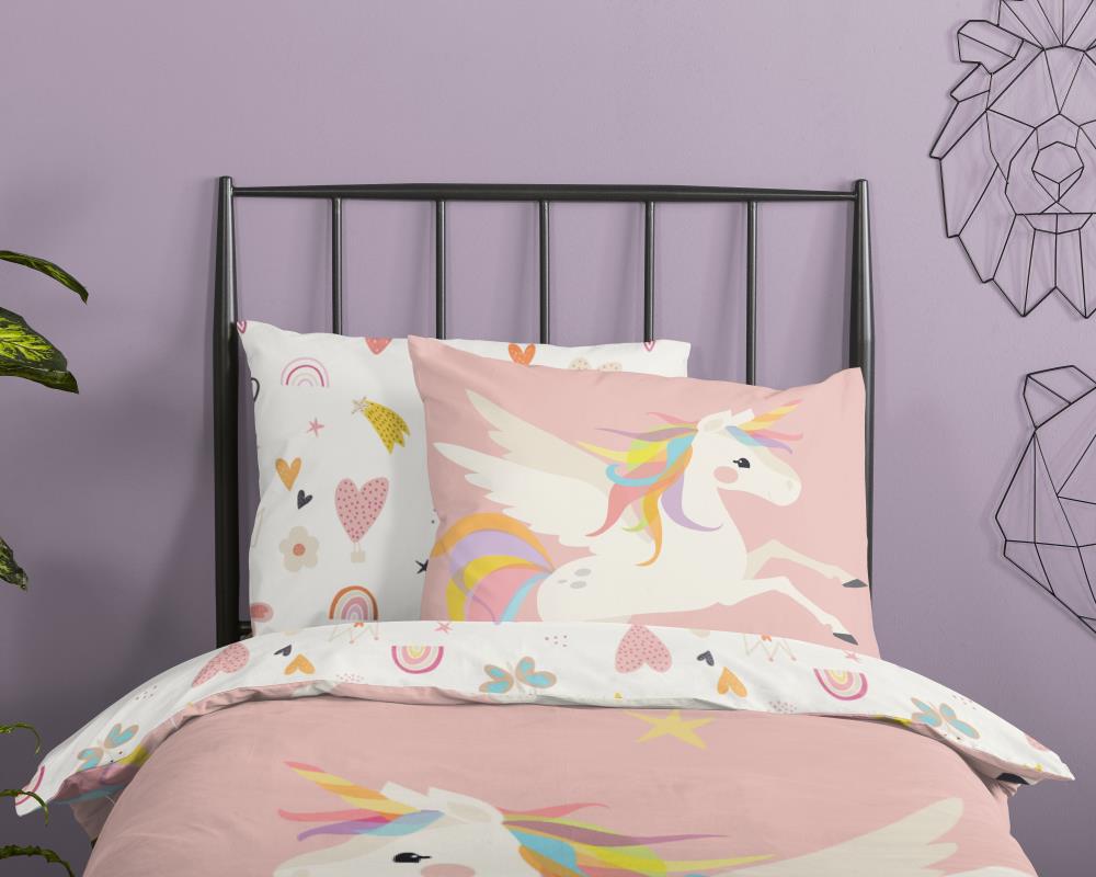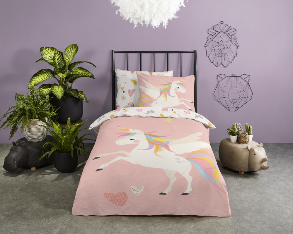 Kinderdekbedovertrek Unicorn van Good Morning in de kleur multi, met een print van regenboog eenhoorn. Het dekbedovertrek is gemaakt van 100% katoen. Deze kwaliteit is ademend, vochtabsorberend en voelt zacht en soepel aan. Dit leuke kinderdekbedovertrek is een leuke toevoeging aan iedere kinderkamer. Het kinderdekbedovertrek is geschikt voor ieder jaargetijde. Het katoenen 100% katoen is heerlijk koel in de zomer en geeft warmte in de winter.
