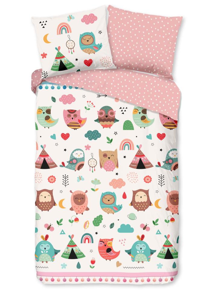 Kinderdekbedovertrek Wise van Good Morning in de kleur multi, met een print van uilen in boho thema. Het dekbedovertrek is gemaakt van 100% katoen. Deze kwaliteit is ademend, vochtabsorberend en voelt zacht en soepel aan. Dit leuke kinderdekbedovertrek is een leuke toevoeging aan iedere kinderkamer. Het kinderdekbedovertrek is geschikt voor ieder jaargetijde. Het katoenen 100% katoen is heerlijk koel in de zomer en geeft warmte in de winter.