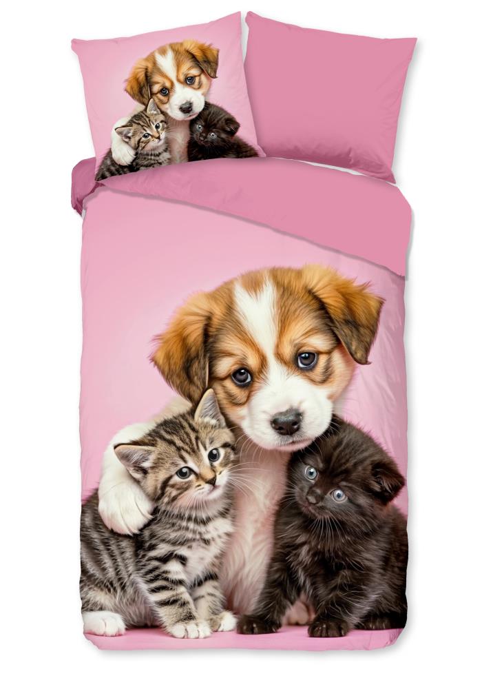 Kinderdekbedovertrek Amis van Pure met hond en poes, in de kleur roze, is gemaakt van 100% polyester -microfiber. Het is een prettige stof die soepel om je heen valt en licht van gewicht is.
