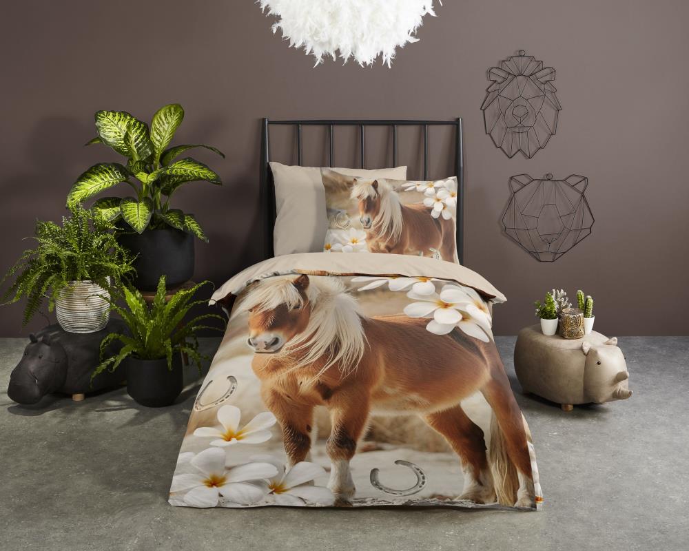 Kinderdekbedovertrek Fabi van Pure met paard & bloemen, in de kleur zand, is gemaakt van 100% polyester -microfiber. Het is een prettige stof die soepel om je heen valt en licht van gewicht is.