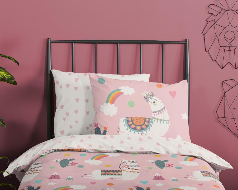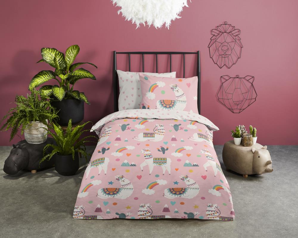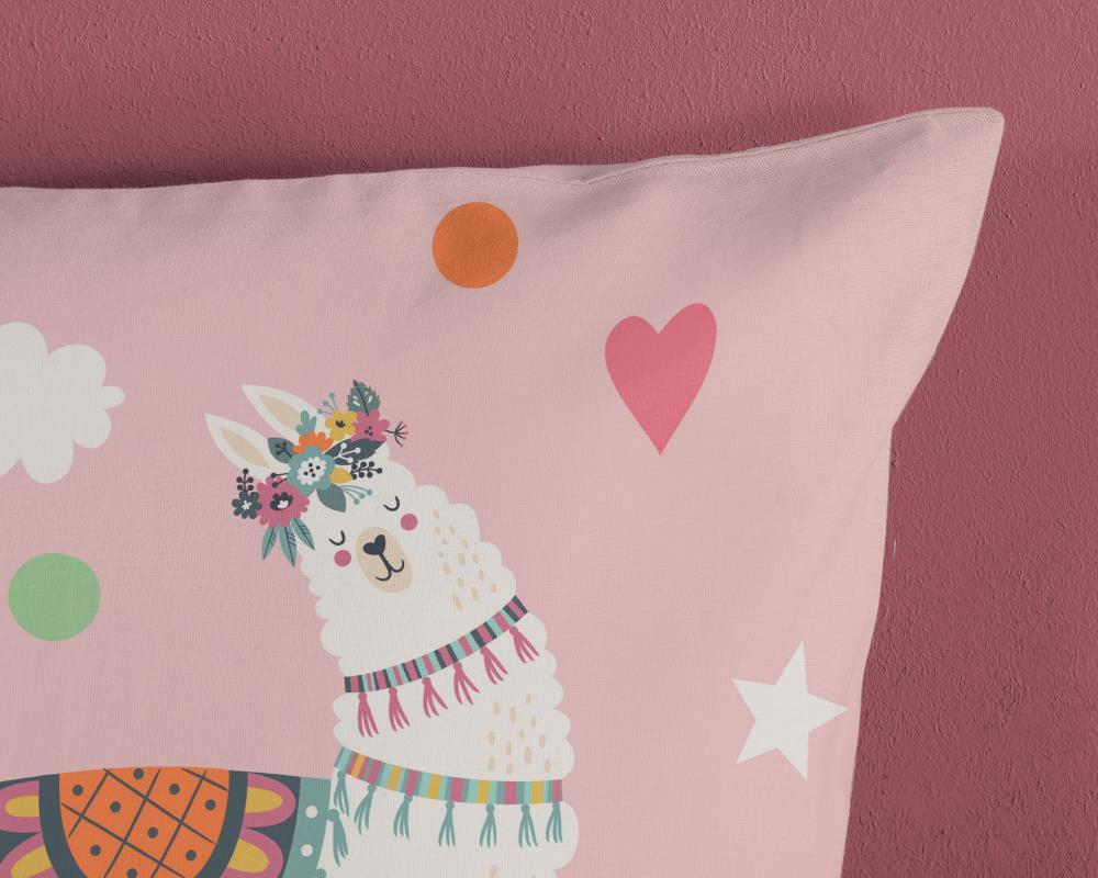 Kinderdekbedovertrek Paca van Pure met lama / alpaca, in de kleur roze, is gemaakt van 100% polyester -microfiber. Het is een prettige stof die soepel om je heen valt en licht van gewicht is.