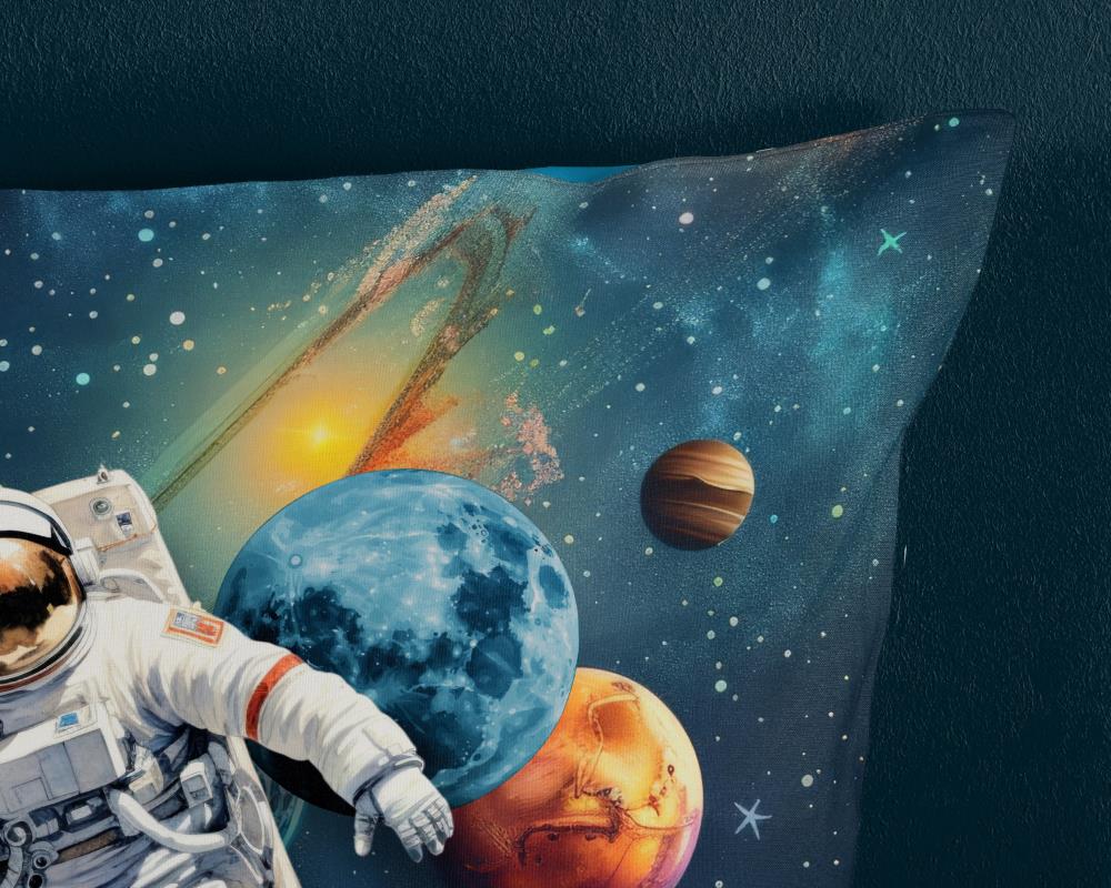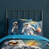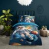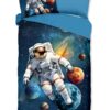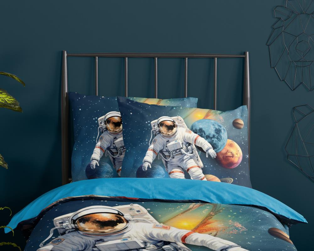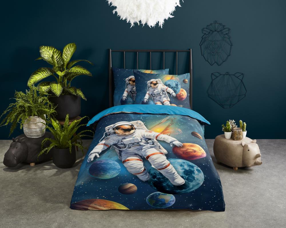 Kinderdekbedovertrek Saros van Pure met Astronaut in ruimte, in de kleur donkerblauw, is gemaakt van 100% polyester -microfiber. Het is een prettige stof die soepel om je heen valt en licht van gewicht is.
