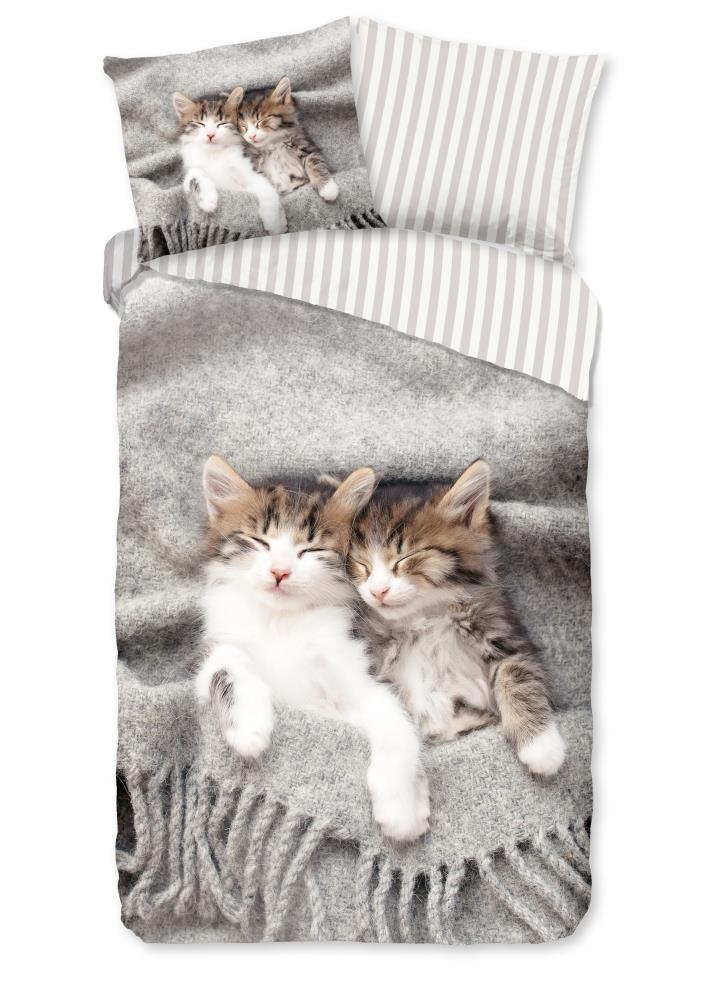 Kinderdekbedovertrek Snooze van Pure met kitten poezen, in de kleur grijs, is gemaakt van 100% polyester -microfiber. Het is een prettige stof die soepel om je heen valt en licht van gewicht is.