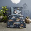Kinderdekbedovertrek Spacedino van Pure met dinosaurssen in de ruimte, in de kleur blauw, is gemaakt van 100% polyester -microfiber. Het is een prettige stof die soepel om je heen valt en licht van gewicht is.