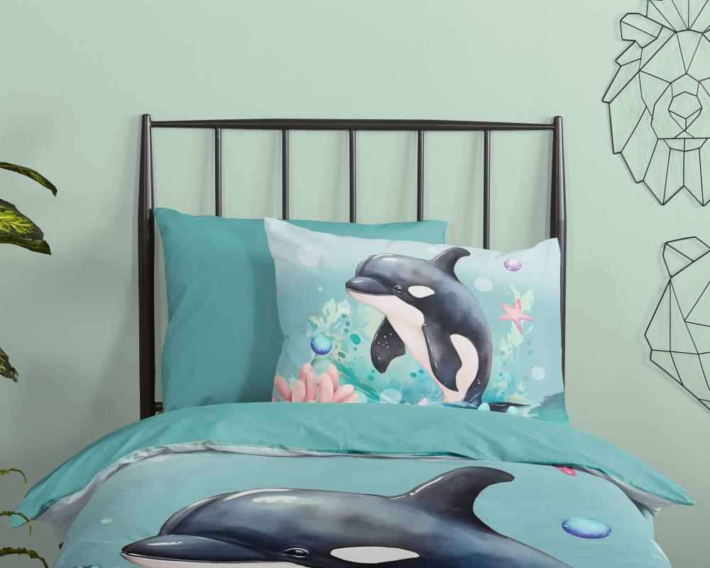 Kinderdekbedovertrek Splash van Pure met Zee/ Orka, in de kleur mint, is gemaakt van 100% polyester -microfiber. Het is een prettige stof die soepel om je heen valt en licht van gewicht is.