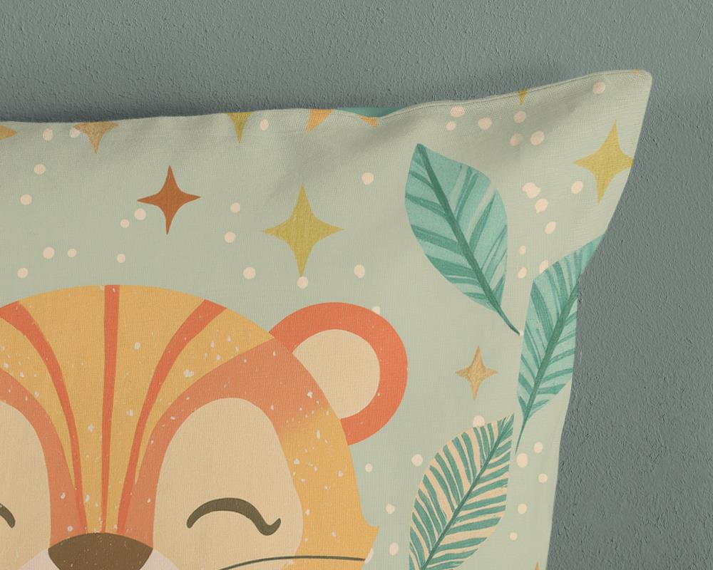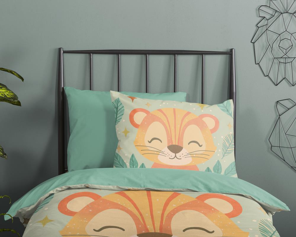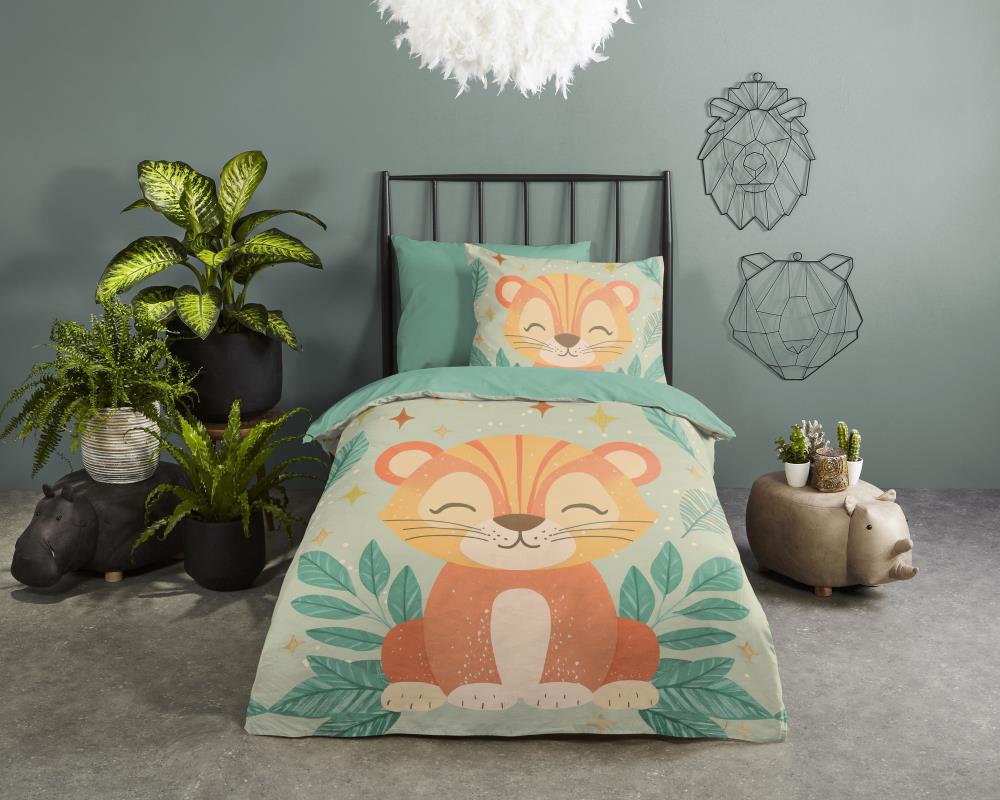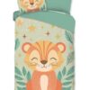 Kinderdekbedovertrek Thijn van Pure met baby leeuw / welpje, in de kleur groen, is gemaakt van 100% polyester -microfiber. Het is een prettige stof die soepel om je heen valt en licht van gewicht is.
