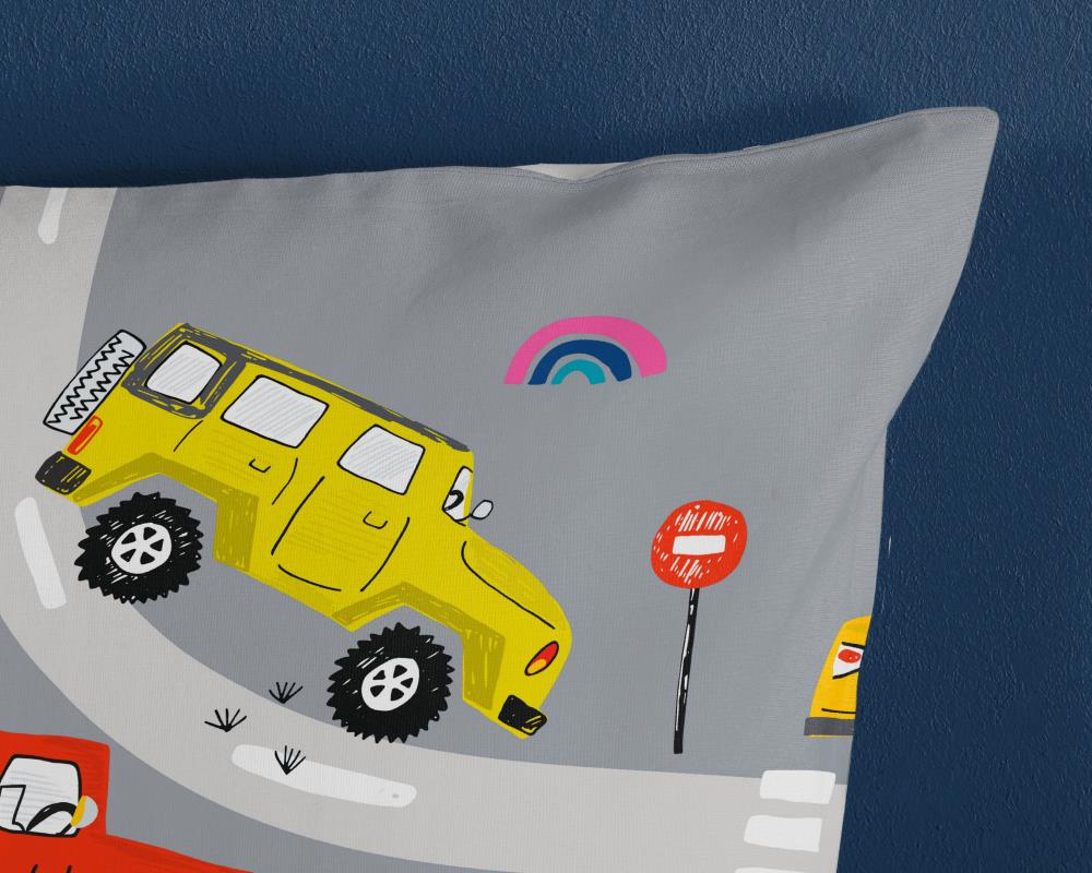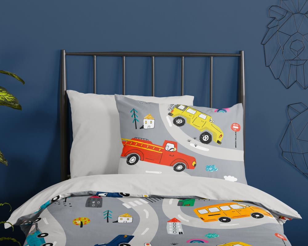 Kinderdekbedovertrek Voyage van Pure met auto's, in de kleur grijs, is gemaakt van 100% polyester -microfiber. Het is een prettige stof die soepel om je heen valt en licht van gewicht is.