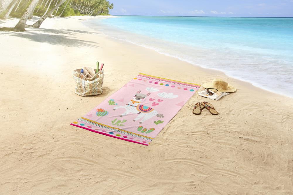 Kinderstrandlaken Lama van Good Morning. Dit strandlaken met lama met cactussen in de kleur roze is een kinderstrandlaken dat direct opvalt. Dit strandlaken van Good Morning is speciaal ontworpen voor kinderen. Kinderstrandlakens van Good Morning hebben altijd een vrolijke en kindvriendelijke print. Voor ieder kind is er wel een leuke Good Morning strandlaken te vinden!