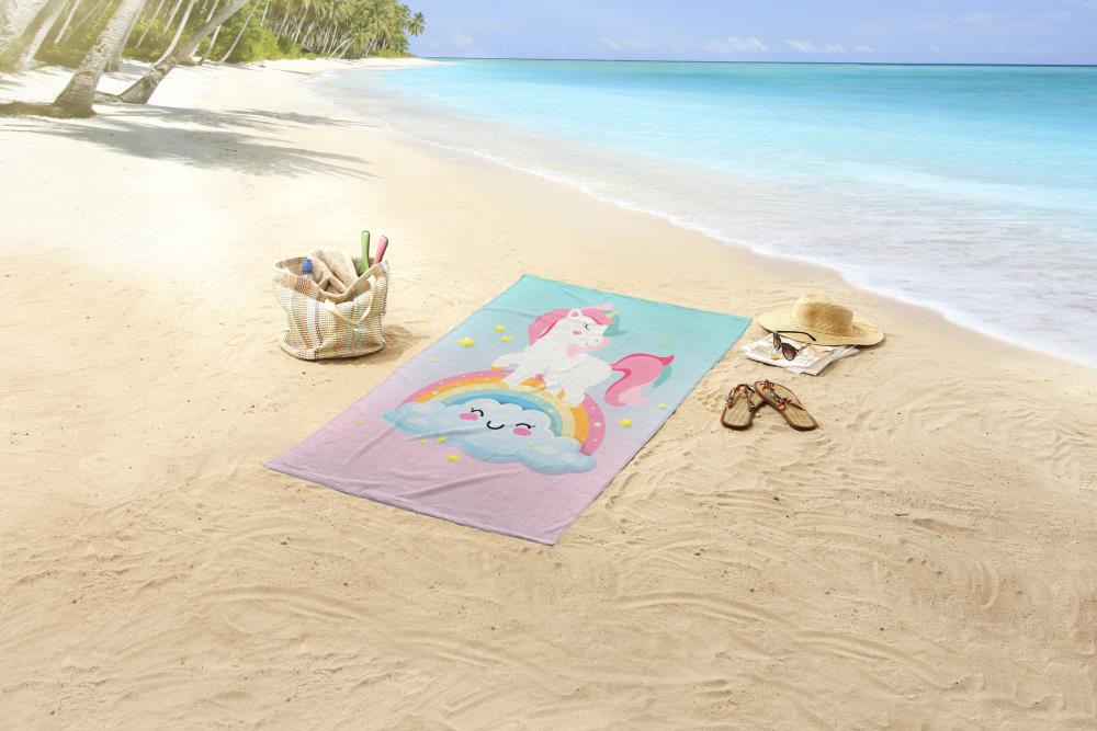 Kinderstrandlaken Sweety van Good Morning. Dit strandlaken met eenhoorn & regenboog in de kleur multi is een kinderstrandlaken dat direct opvalt. Dit strandlaken van Good Morning is speciaal ontworpen voor kinderen. Kinderstrandlakens van Good Morning hebben altijd een vrolijke en kindvriendelijke print. Voor ieder kind is er wel een leuke Good Morning strandlaken te vinden!