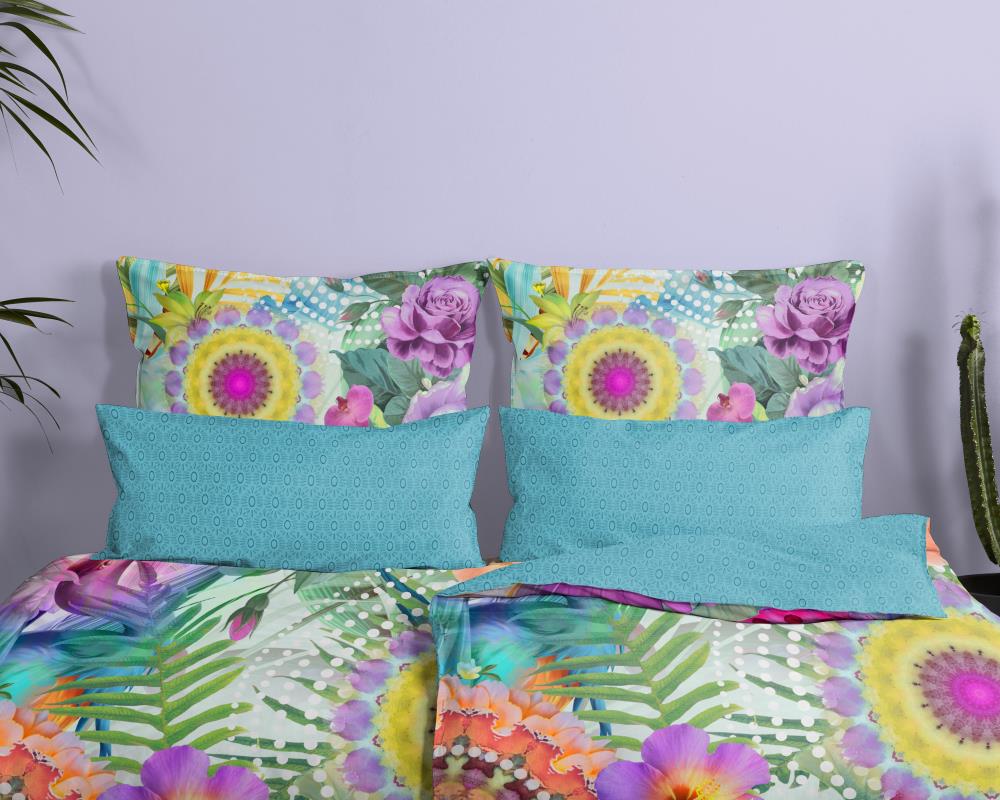 Satijnen kussensloop aviva van HIP. Dit kussensloop in de kleur multi is een stijlvol kussensloop dat perfect past bij het bijbehorende dekbedovertrek aviva van HIP. Het kussensloop is zelfs gemaakt van dezelfde print als de achterkant van het dekbedovertrek.