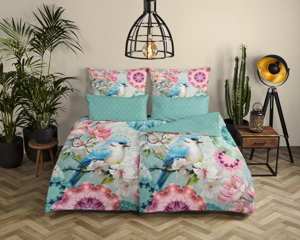 Satijnen kussensloop elidsa van HIP. Dit kussensloop in de kleur mint is een stijlvol kussensloop dat perfect past bij het bijbehorende dekbedovertrek elidsa van HIP. Het kussensloop is zelfs gemaakt van dezelfde print als de achterkant van het dekbedovertrek.