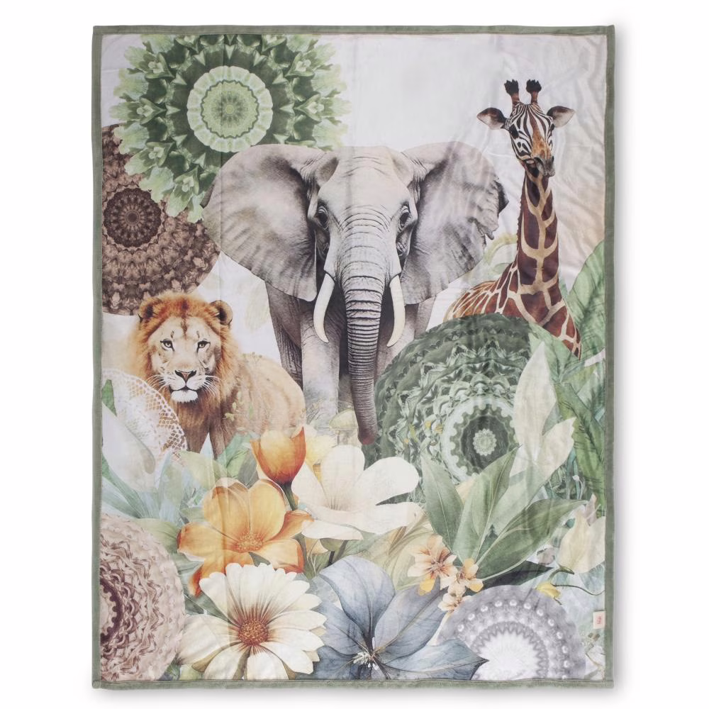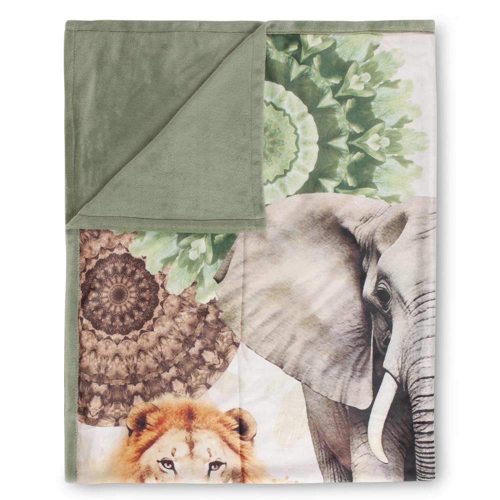 Plaid sagadar van HIP. Dit plaid met mandalas, bloemen & safari dieren, in de kleur groen, is een plaid dat opvalt. Plaids van HIP zijn kleurrijk en uniek! De zoom en de achterkant van een HIP plaid hebben een bijpassende kleur of een bijpassende sherpa-stof.