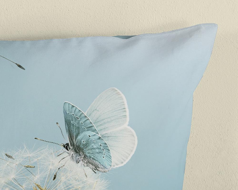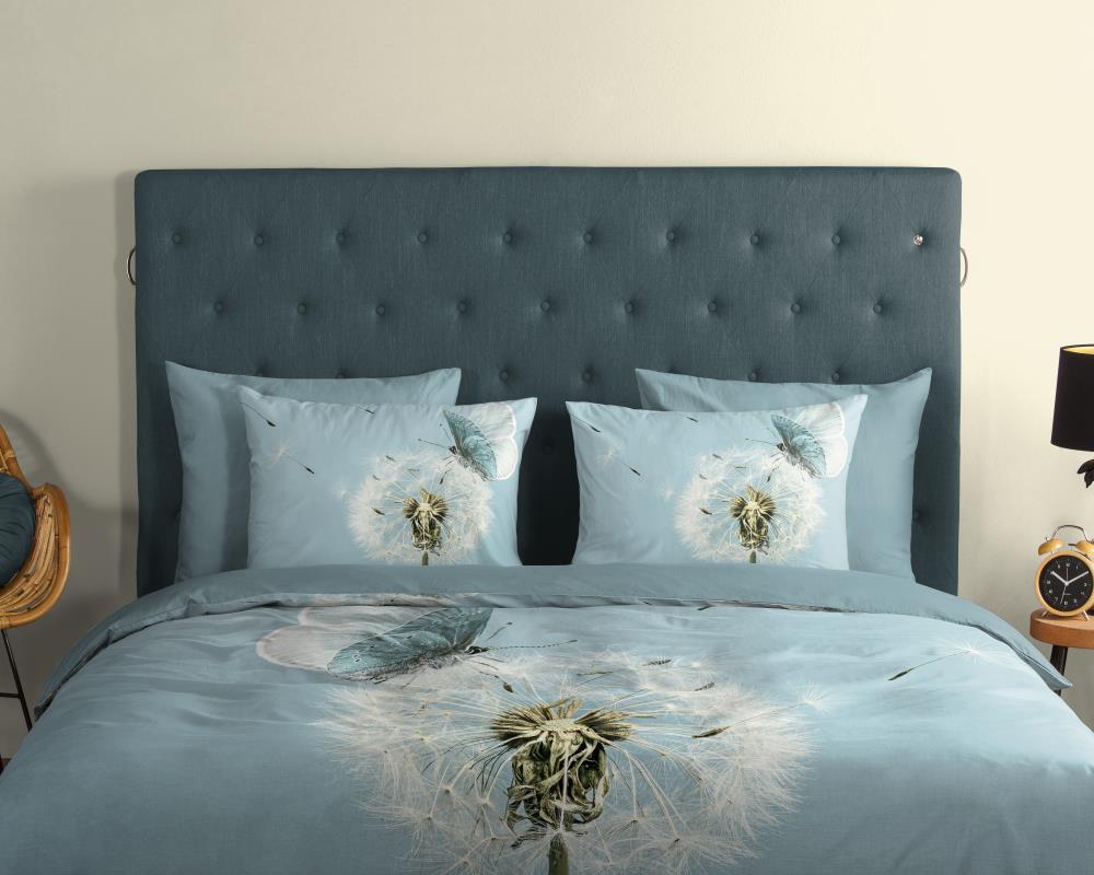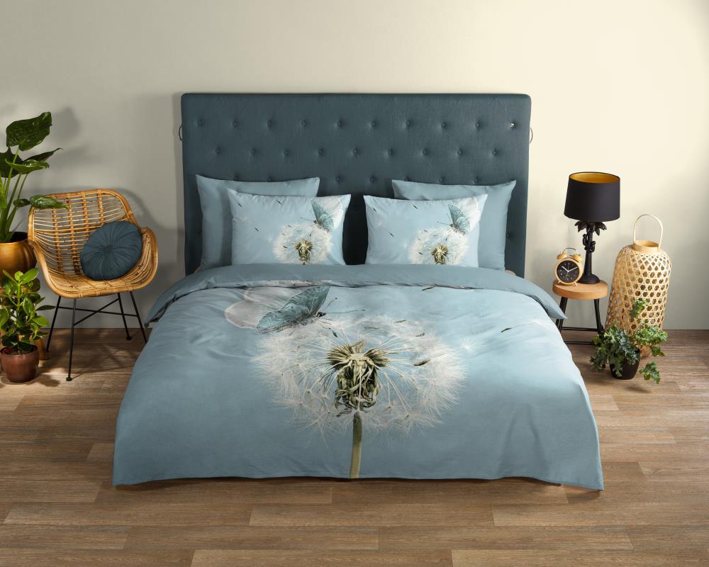 Dekbedovertrek Papillon van Good Morning met Vlinder met paardenbloem, in de kleur aqua. Dit is gemaakt van 100% katoen. De kwaliteit is ademend, vochtabsorberend en voelt zacht en soepel aan. Dit mooie dekbedovertrek fleurt iedere slaapkamer op en is geschikt voor elk jaargetijde. Het katoenen dekbedovertrek is heerlijk koel in de zomer en geeft warmte in de winter.