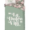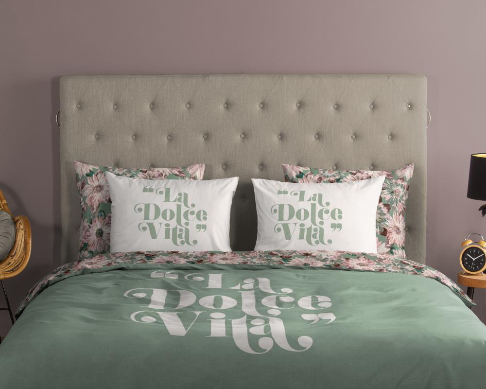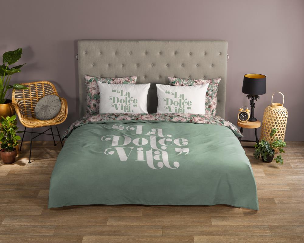 Dekbedovertrek Vita van Good Morning met met tekst en bloemen, in de kleur groen. Dit is gemaakt van 100% katoen. De kwaliteit is ademend, vochtabsorberend en voelt zacht en soepel aan. Dit mooie dekbedovertrek fleurt iedere slaapkamer op en is geschikt voor elk jaargetijde. Het katoenen dekbedovertrek is heerlijk koel in de zomer en geeft warmte in de winter.