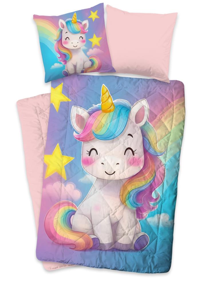 Wasbaar kinderdekbed van Pure met synthetische vulling. Dit multi gekleurde, wasbare dekbed is voorzien van een leuke regenboog eenhoorn print. Het vormt een gezellige toevoeging aan iedere kinderkamer en is onderhoudsvriendelijk. Een goed dekbed draagt bij aan een comfortabele nachtrust voor je kind.