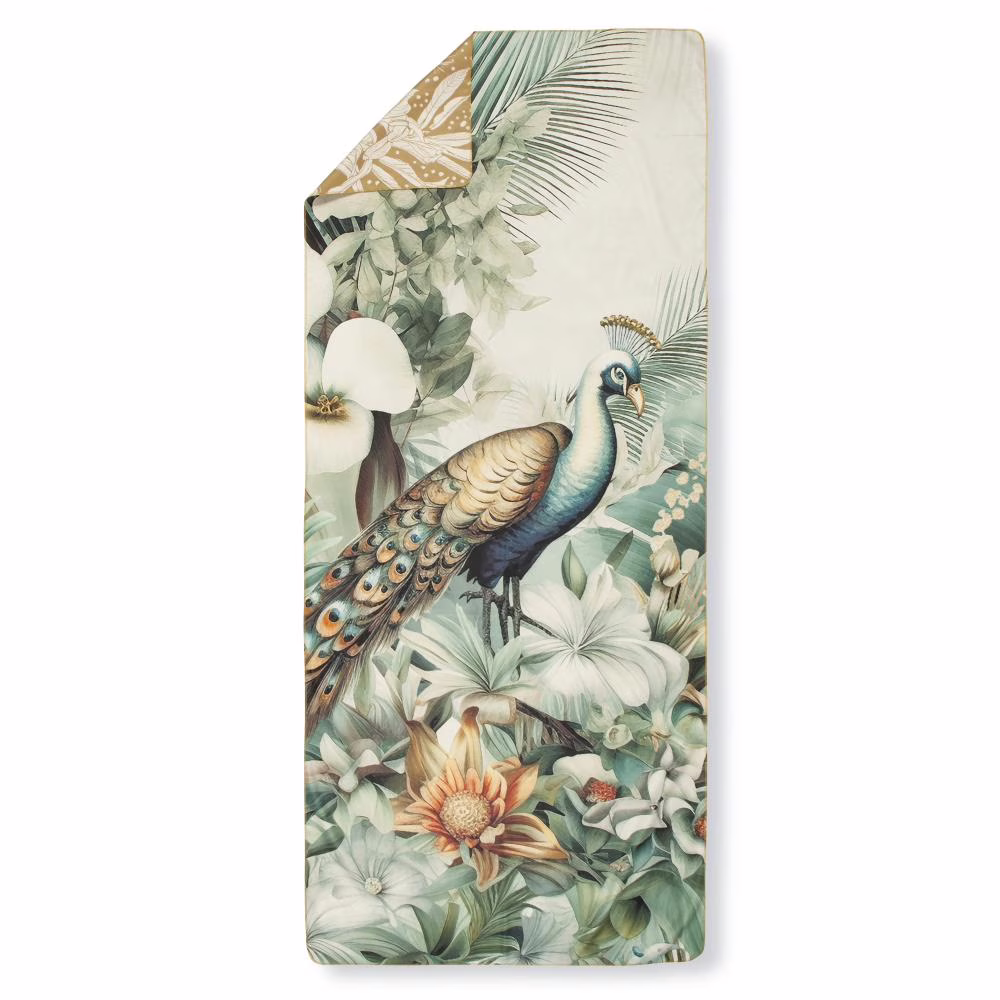 Yoga/ reishanddoek Dana van Descanso. Deze yoga/ reishanddoek met bladeren en vogels, in de kleur multi, is een handdoek dat opvalt. Yoga- en reishanddoeken van Descanso zijn stijlvol, uniek én multifuntioneel. Deze microvezel handdoeken hebben aan de voorkant een haarscherpe digitale print en aan de achterzijde een bijpassende, subtiele print. De luxe afwerking maakt ze perfect voor wie functionaliteit en design wil combineren.