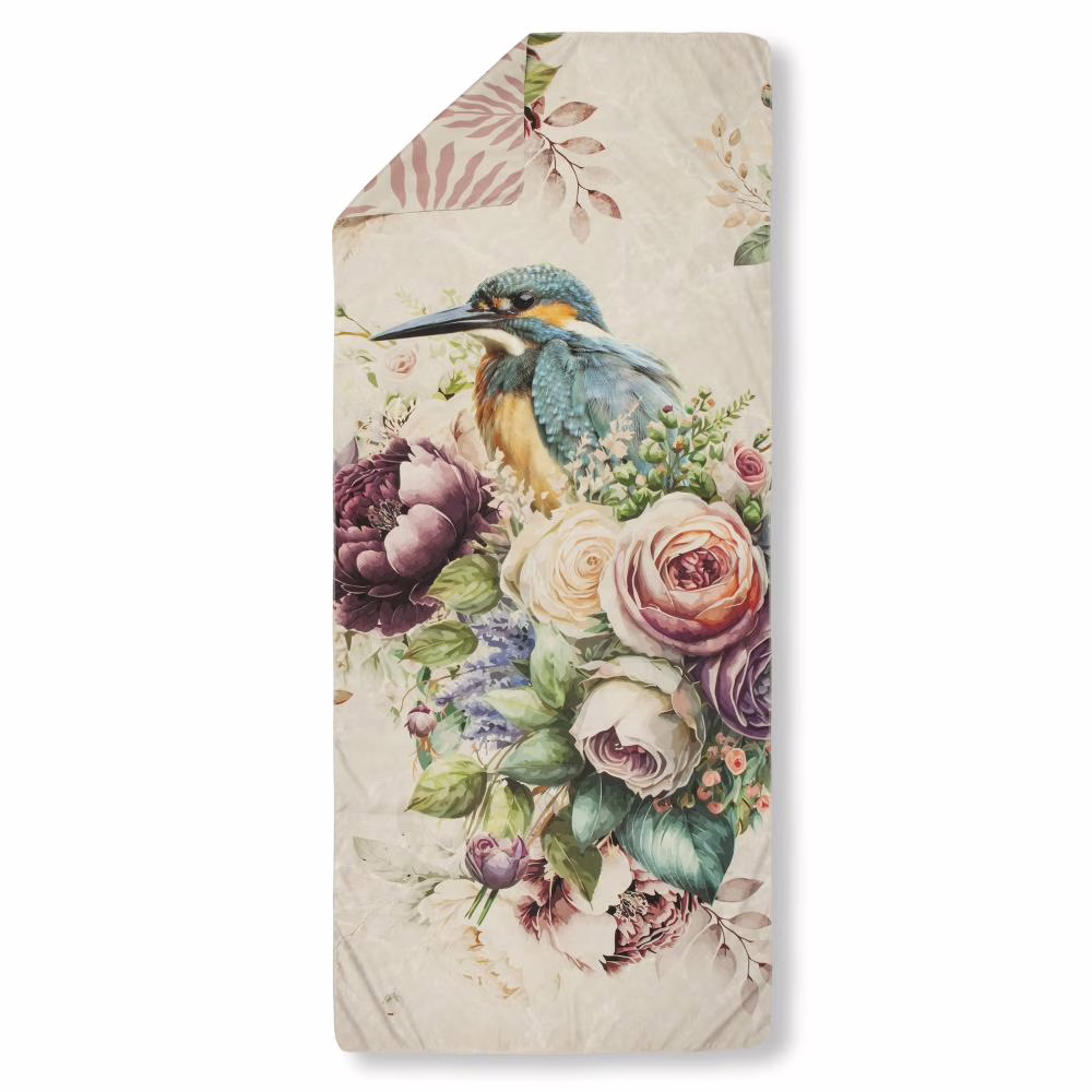 Yoga/ reishanddoek Verde van Descanso. Deze yoga/ reishanddoek met bloemen en vogels, in de kleur zand, is een handdoek dat opvalt. Yoga- en reishanddoeken van Descanso zijn stijlvol, uniek én multifuntioneel. Deze microvezel handdoeken hebben aan de voorkant een haarscherpe digitale print en aan de achterzijde een bijpassende, subtiele print. De luxe afwerking maakt ze perfect voor wie functionaliteit en design wil combineren.