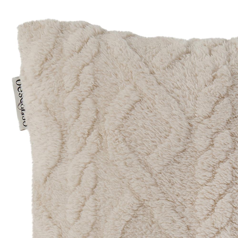 Sierkussen jacquard teddy van Descanso. Dit sierkussen met jacquard teddy, in de kleur ecru, is een sierkussen dat opvalt. Een Descanso sierkussen is stijlvol en uniek! Dit luxe teddy sierkussen is jacquard geweven, waardoor er een mooi patroon in het sierkussen zichtbaar is. Een sierkussen van Descanso brengt sfeer in iedere kamer!