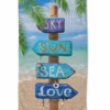 Strandlaken Happy place van Good Morning. Dit strandlaken met Wegwijzering op het strand, in de kleur blauw, is een echte eyecatcher. Strandlakens van Good Morning hebben altijd een leuke en vrolijke print.