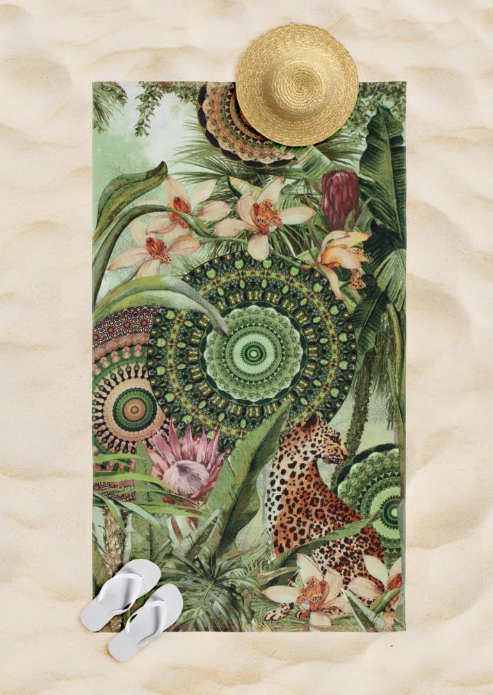 Strandlaken abhita van HIP. Dit strandlaken met tropische print en mandala's, in de kleur groen, is een strandlaken dat opvalt. Alle strandlakens van HIP zijn vrolijk gekleurd. Een HIP strandlaken is kleurrijk, uniek en een echte eye-catcher op het strand!