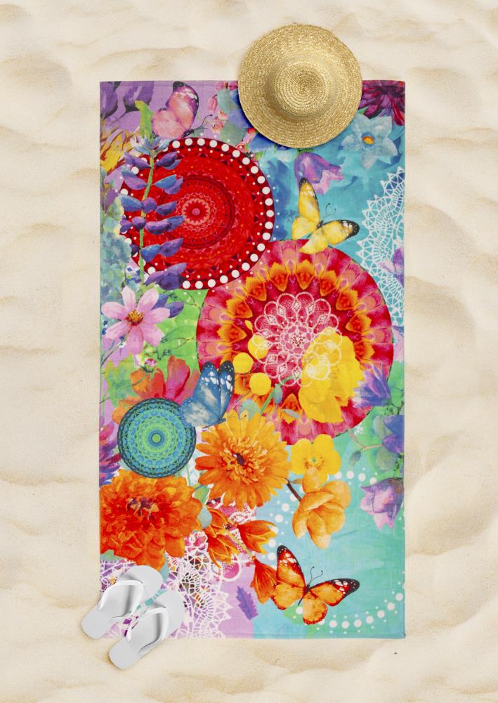Strandlaken vitori van HIP. Dit strandlaken met mandala's en bloemen, in de kleur multi, is een strandlaken dat opvalt. Alle strandlakens van HIP zijn vrolijk gekleurd. Een HIP strandlaken is kleurrijk, uniek en een echte eye-catcher op het strand!